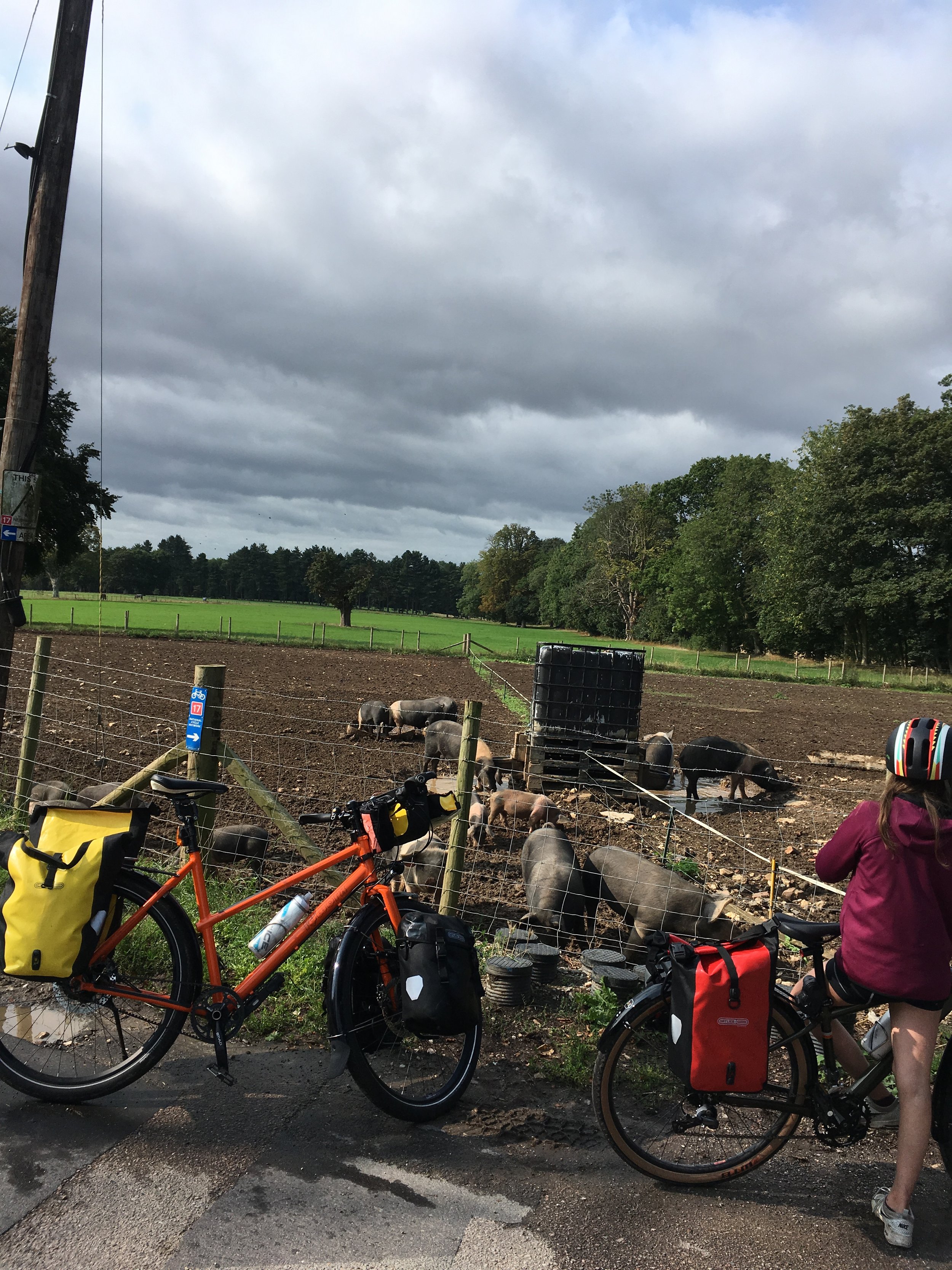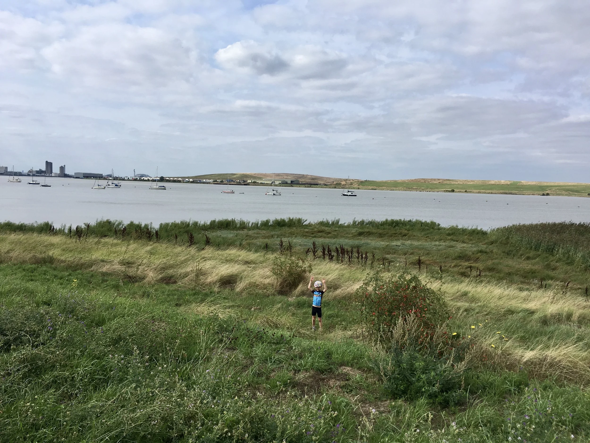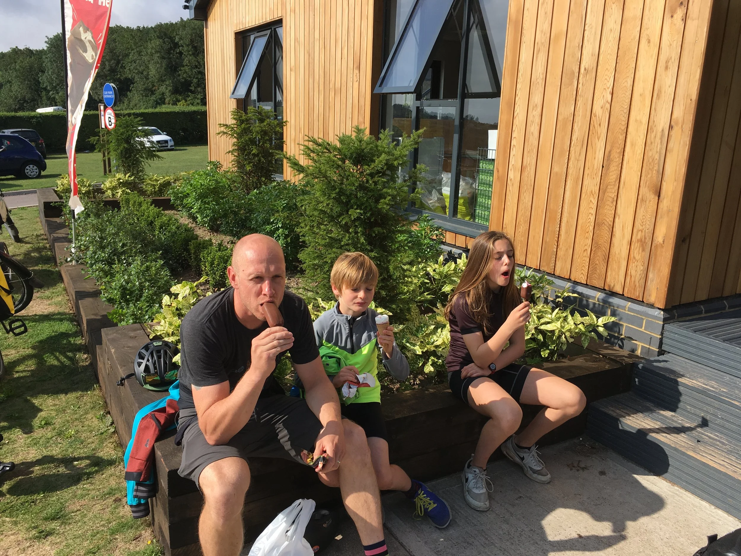 Na een ontbijt van ijscreme volgens we de sustrans langs de zee, een stuk private road, langs een megagolfterrein,…om uiteindelijk op de Nethergong Camping te belanden, waar we meteen 2 dagen gebleven zijn wegens groot succes bij de kindjes.